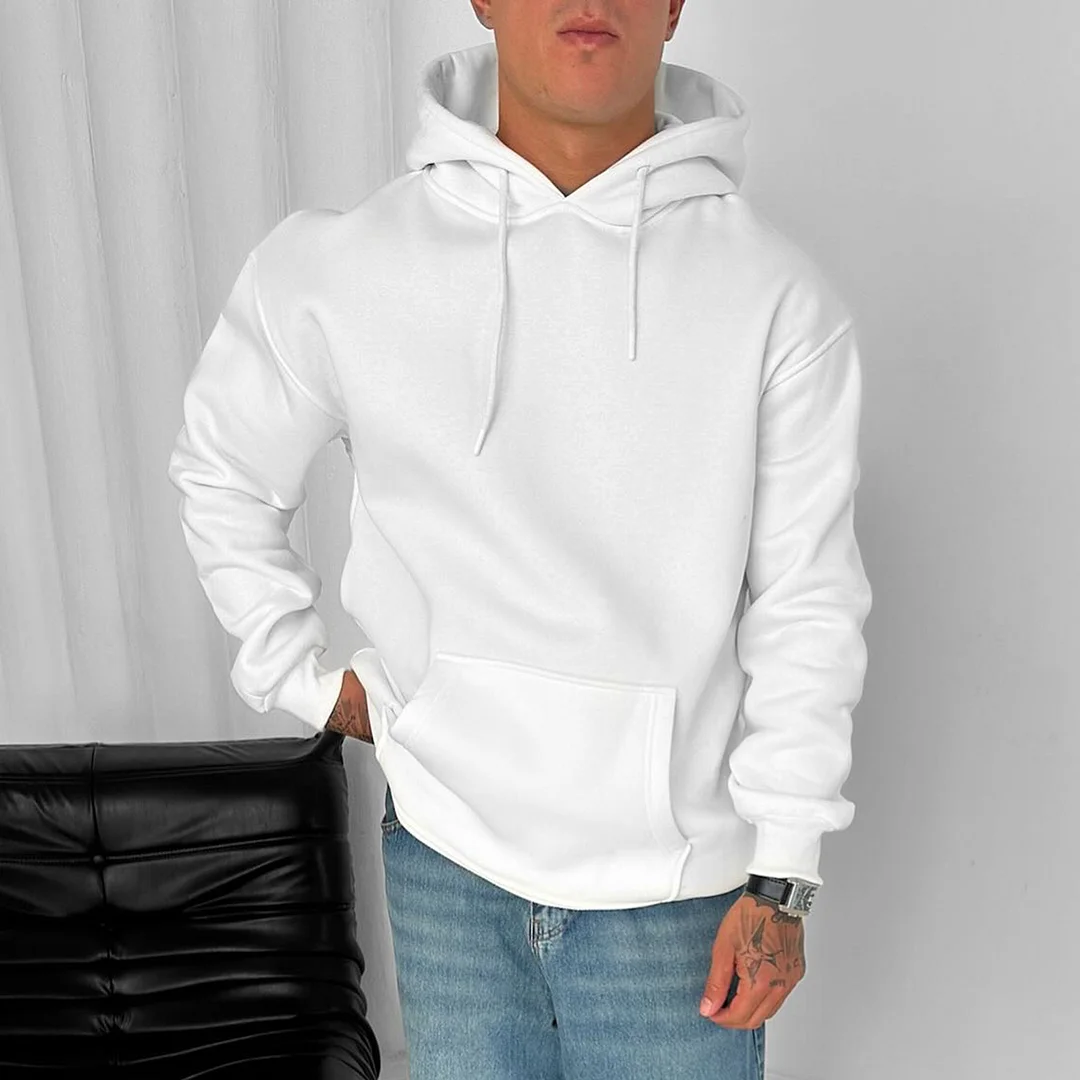 • Design Elements: Front pouch pocket, bold lettering on chest, ribbed cuffs and hem